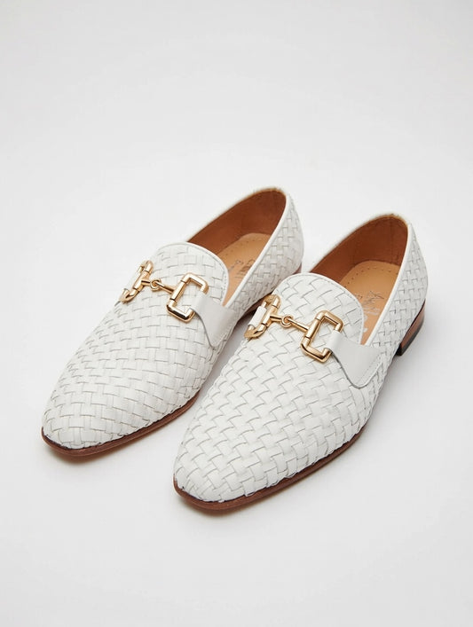 AS Tango 'Men’s White Woven Leather Loafers