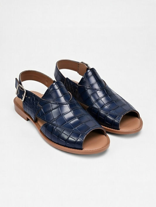 AS - Mingo"Premium Navy Blue Crocodile Texture Leather Peshawari Sandals for Men