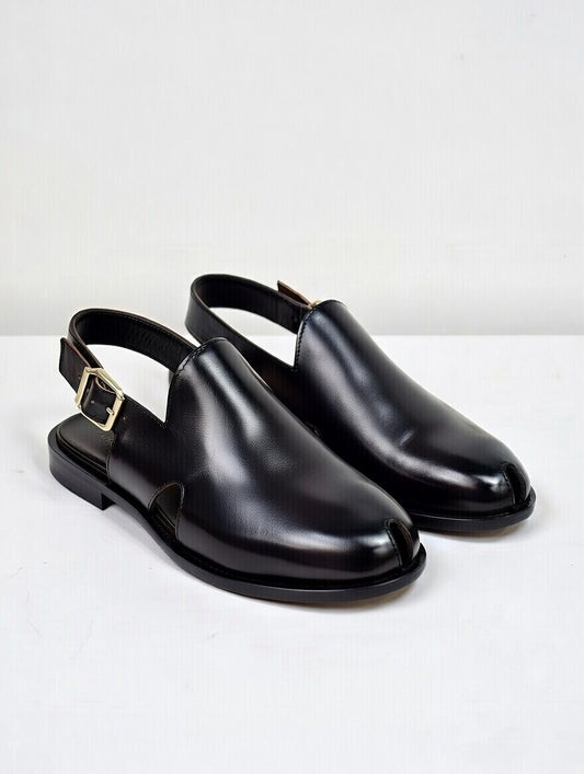AS - Vedot"Premium Black Leather Kaptaan-Style Sandals