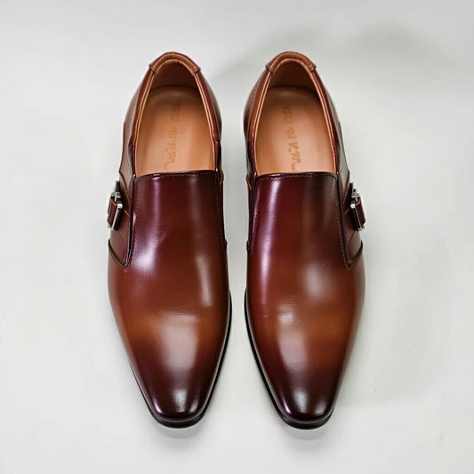 AS 2534"Men's Brown Leather Monk Strap Loafers