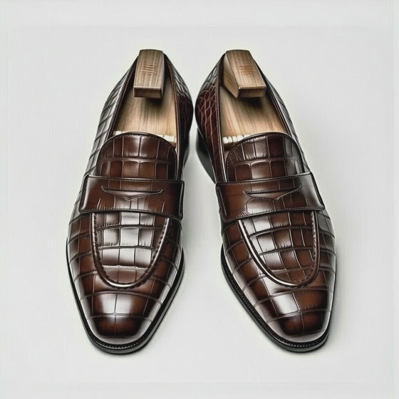 AS - Loaois"Men's Brown Crocodile Penny Loafers