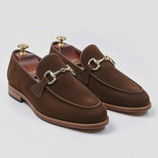 levate your style with these men’s brown horsebit loafers, crafted for a timeless and sophisticated look. Made from premium-quality leather with a refined textured finish, these loafers feature an elegant gold-tone horsebit detail that adds a touch of luxury to every step.